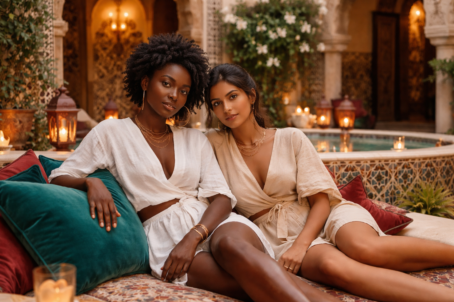 From the rose-colored walls of Marrakech to the white coast of Andalusia — this journey moves at the pace of long lunches, golden light, and the kind of leisure that arrives with you. Art, architecture, food, and culture — experienced together, never rushed.